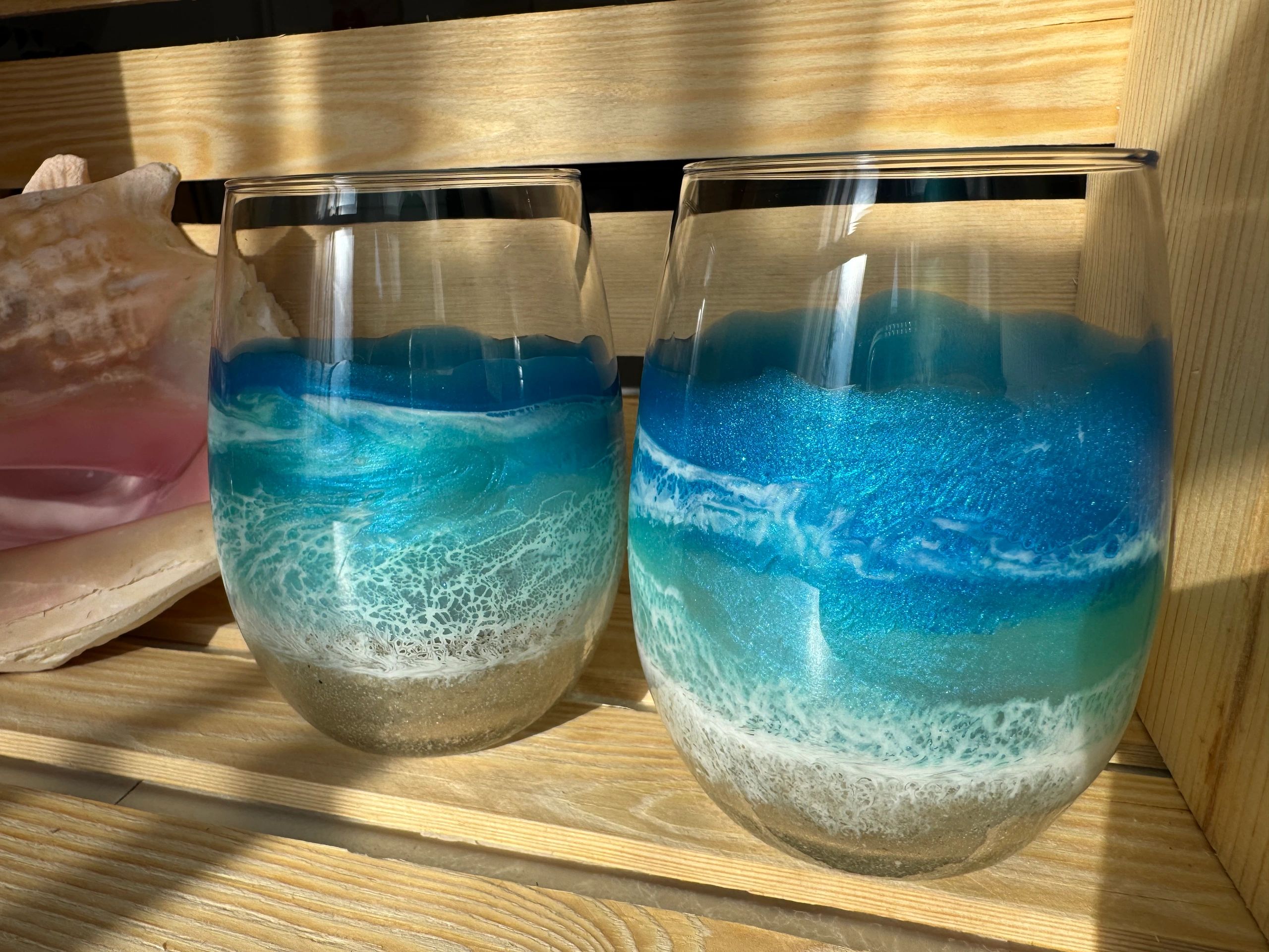 Discover unique hand-poured resin glassware inspired by the beach and island living. Each piece is one-of-a-kind yet complements others, allowing you to create beautiful sets. Explore our collection of functional art that adds a touch of elegance to any space.